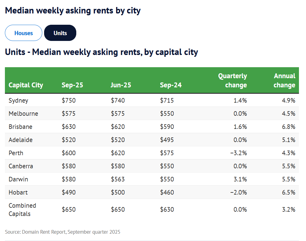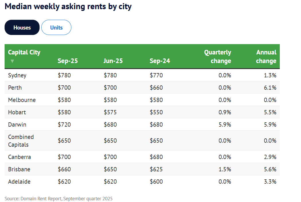The September quarter data reveals Melbourne's median unit asking rent firmly at $575 a week, up $25 from a year ago, while house asking rents remain at a steady $580 a week. These figures, consistent with the previous quarter, underscore a market where rents have plateaued at historically high levels rather than receding.