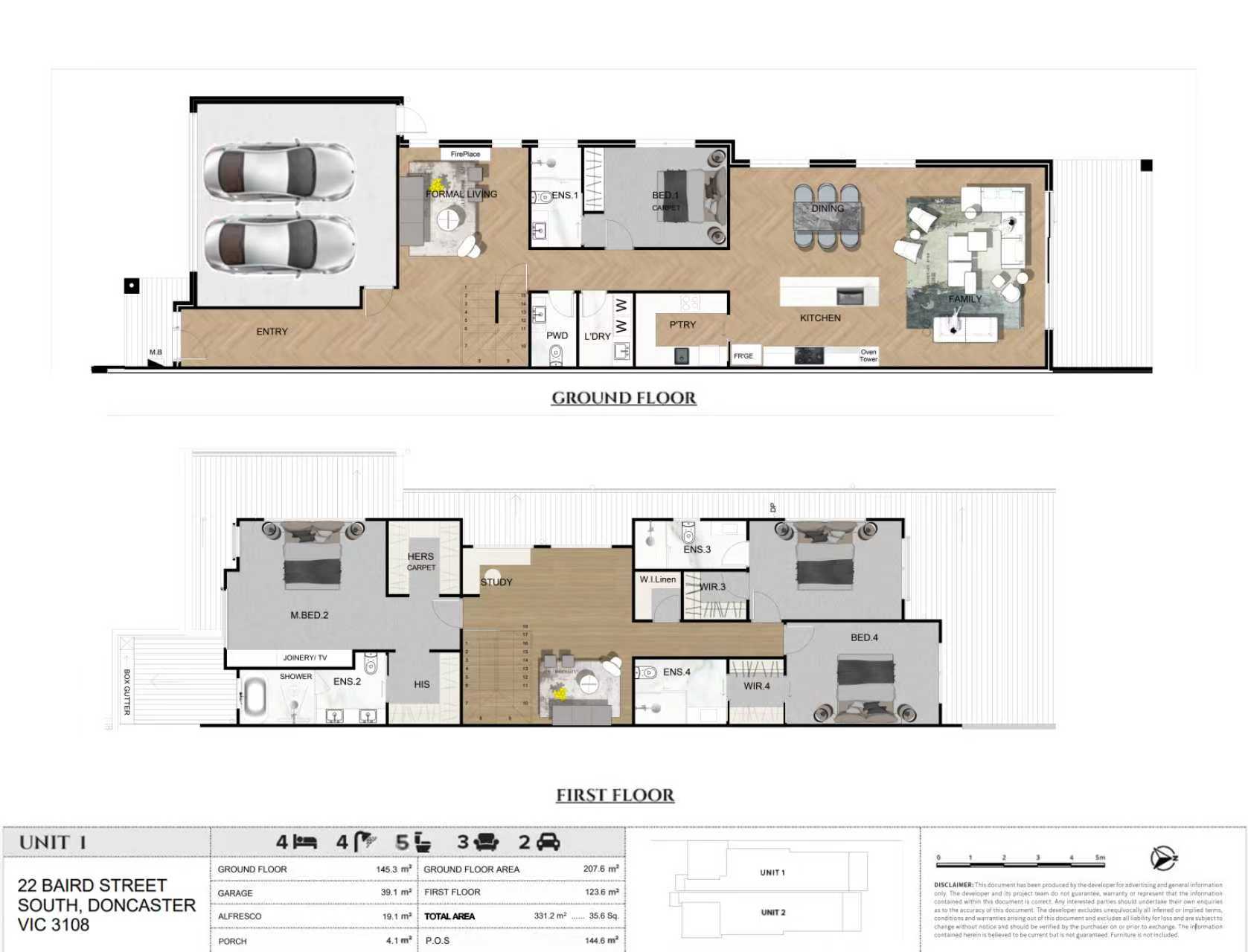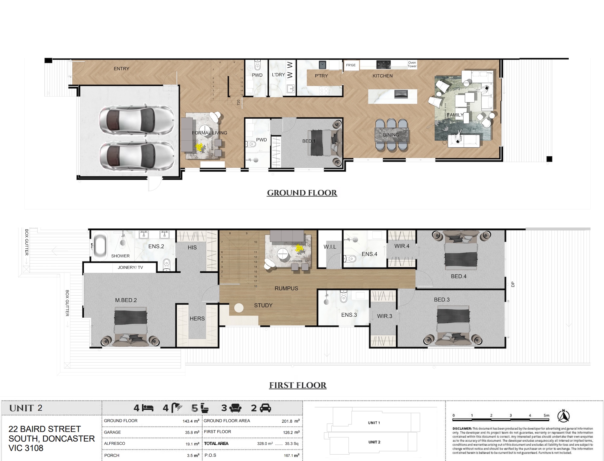 Located at 22 Baird Street South, this exclusive development presents a pair of side-by-side townhouses situated within one of Doncaster's most desirable neighbourhoods. Each expansive four-bedroom residence, with internal areas exceeding 328 square meters, is thoughtfully designed for contemporary family living. The project's core appeal is its unparalleled convenience, boasting outstanding access to major retail hubs like Westfield Doncaster and Box Hill Central, reputable schools, and seamless connectivity to the CBD via the Eastern Freeway. Currently under construction with an anticipated completion in Q4 2025, these homes offer a significant opportunity in a blue-chip locale. Property & Design Highlights: - Two available four-bedroom residences (U1: 4.5 Bath, 331.2㎡; U2: 3.5 Bath, 328㎡) - Generously proportioned floorplans with dual-car garaging - Gourmet Dual-Kitchen Configuration: > Main Kitchen featuring premium Miele appliances, including an oven and microwave > Butler's Pantry / Wok Kitchen equipped with high-performance Fotile appliances Amenities Highlights: [Shopping Centre] Westfield Doncaster - 4 min drive (1.3km) [Shopping/Dining] Doncaster Rd Commercial Street - 10 min walk (750m) [Shopping/Dining] Box Hill Central - 8 min drive (3.6km) [Park/Recreation] Marshall Reserve Playground - 3 min walk (150m) [Park/Recreation] Koonung Creek Trail - 8 min walk (650m) [Transport] Melbourne CBD via M3 Freeway - 35 min drive (20km) Zoned Schools: Doncaster Primary School - 3 min drive (1.1km) Doncaster Secondary College - 4 min drive (1.5km)