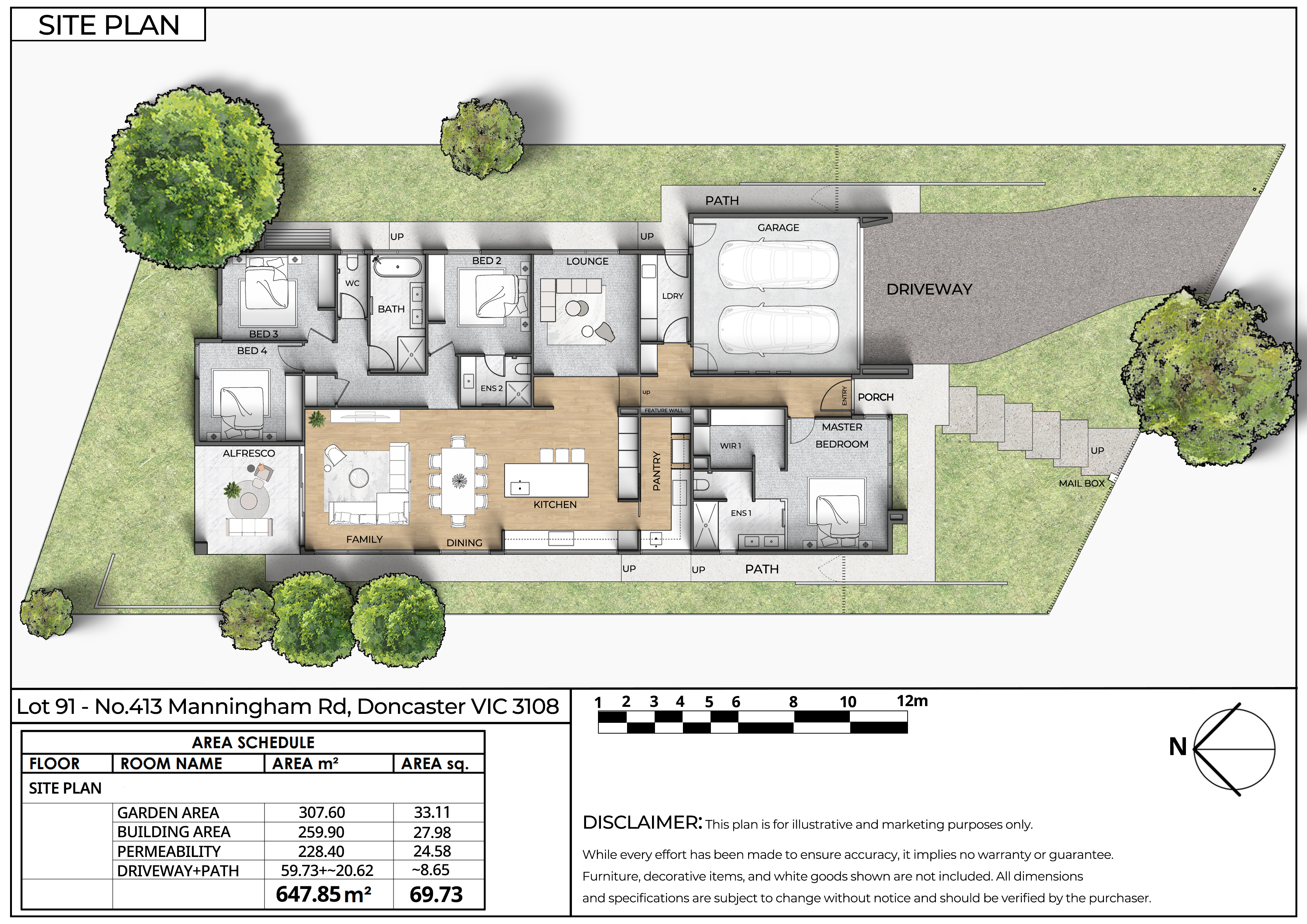 Unveil a lifestyle of unparalleled grandeur in this architectural single-level masterpiece, commanding a substantial 652sqm landholding. Designed for the elite, the residence exudes an air of understated opulence, offering a seamless fusion of expansive entertaining zones and private family sanctuaries. Every corner reflects a commitment to spatial elegance and refined aesthetics, creating a home that is both impressive and inviting. Perfectly positioned just moments from Westfield Doncaster and premier schools, this is an unrivaled opportunity for luxurious, convenient living. Property Features: - Gourmet kitchen featuring Miele oven, cooktop, and dishwasher, accented by stone benchtops. - Sun-drenched outdoor potential with a desirable north-facing rear aspect. - Luxurious bathrooms showcasing floor-to-ceiling porcelain tiling and premium Innova Range fittings. - Comprehensive climate control with split system air conditioning installed in the living area and every bedroom. - Elegant interiors with Engineered Timber Flooring in main areas and high-quality square set plaster finishes. - Durable construction utilizing Light Gauge Steel Frames and low-maintenance Colorbond roofing. - Secure parking via a double garage with remote controlled sectional panel doors. Amenities Highlights: [Transport] Bus Stop Route 281/305/903 - 1 min walk (80m) [Parks] Crawford Reserve Playground - 5 min walk (400m) [Shopping] Westfield Doncaster - 3 min drive (1.3km) [Shopping] Macedon Plaza - 3 min drive (1.0km) [Medical] Manningham Medical Centre - 10 min walk (700m) [Private] St. Gregory the Great Primary School - 2 min drive (900m) [Recreation] Aquarena Activity Centre - 3 min drive (1.2km) [CBD] To CBD Melbourne - 26 min drive (17.5km) Zone School: Templestowe Heights Primary School - 3 min drive (1.6km) Templestowe College - 4 min drive (1.4km)