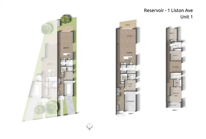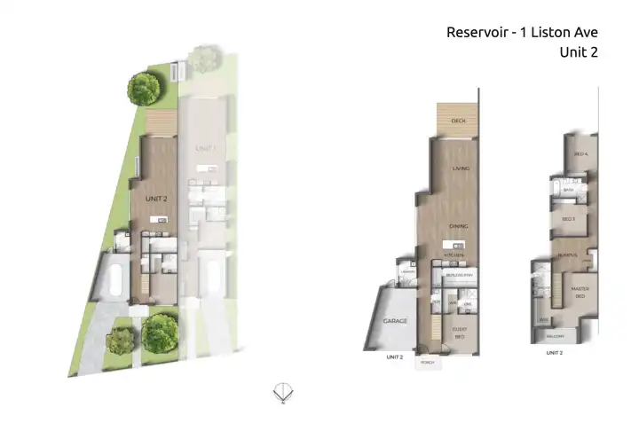 Located at 1 Liston Avenue in the thriving suburb of Reservoir, this exclusive development presents two meticulously designed double-storey townhouses, setting a new standard for contemporary living. Each residence offers a spacious four-bedroom, three-and-a-half-bathroom floorplan, designed to provide an exceptional lifestyle of comfort and convenience on generous land allotments. Currently under construction with an anticipated completion in Q4 2026, this project is a prime opportunity for discerning clients seeking a high-quality, low-maintenance home with outstanding connectivity to transport, educational institutions, shopping centres, and recreational facilities. Property Features: - Light gauge steel frame construction with PGH brickwork and James Hardie cladding - Durable Colorbond roofing, fascia, and gutters - Aluminium glazed windows as per energy report - Full Westinghouse kitchen suite including oven, cooktop, rangehood, and dishwasher - Tiled kitchen splashback - Laminated MDF cabinetry for kitchen and storage - Floor tiling in all wet areas (bathrooms and laundry) - A combination of carpet and floorboards as per developer plans - Glass shower screens in bathrooms - Sectional panel garage door with remote controls - Comprehensive landscaping, driveway, and fencing included as per plans - Hardwired smoke detectors with battery backup and RCD safety switch Amenities Highlights: [Train Station] Keon Park Station - 1.4km (3 min drive) [Bus Stop] Routes 556/902 - Approx. 200m (4 min walk) [Shopping Centre] Northland Shopping Centre - 6.3km (13 min drive) [Local Shops] Reservoir Central & Commercial Street - 3.1km (6 min drive) [Retail] Bunnings Thomastown - 900m (2 min drive) [University] RMIT Bundoora Campus - 5.5km (10 min drive) [University] La Trobe University - 4.9km (9 min drive) [Recreation] Just Fitness Gym - 500m (8 min walk) [Park] Athletic Field - 200m (4 min walk) [Major Arterial] Access to Melbourne CBD via M3 - 35 min drive (32km) Zoned Schools: Reservoir Views Primary School - 1.3km (3 min drive) William Ruthven Secondary College - 2.4km (5 min drive)
